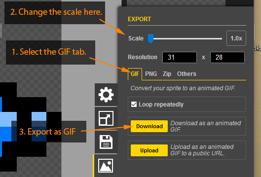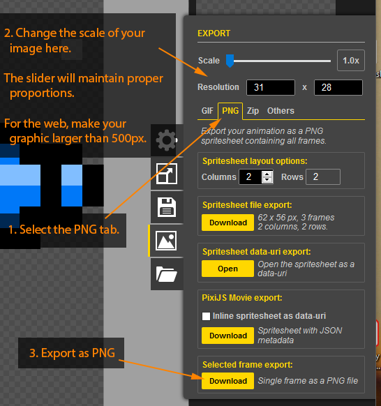Exporting sprites from Piskel